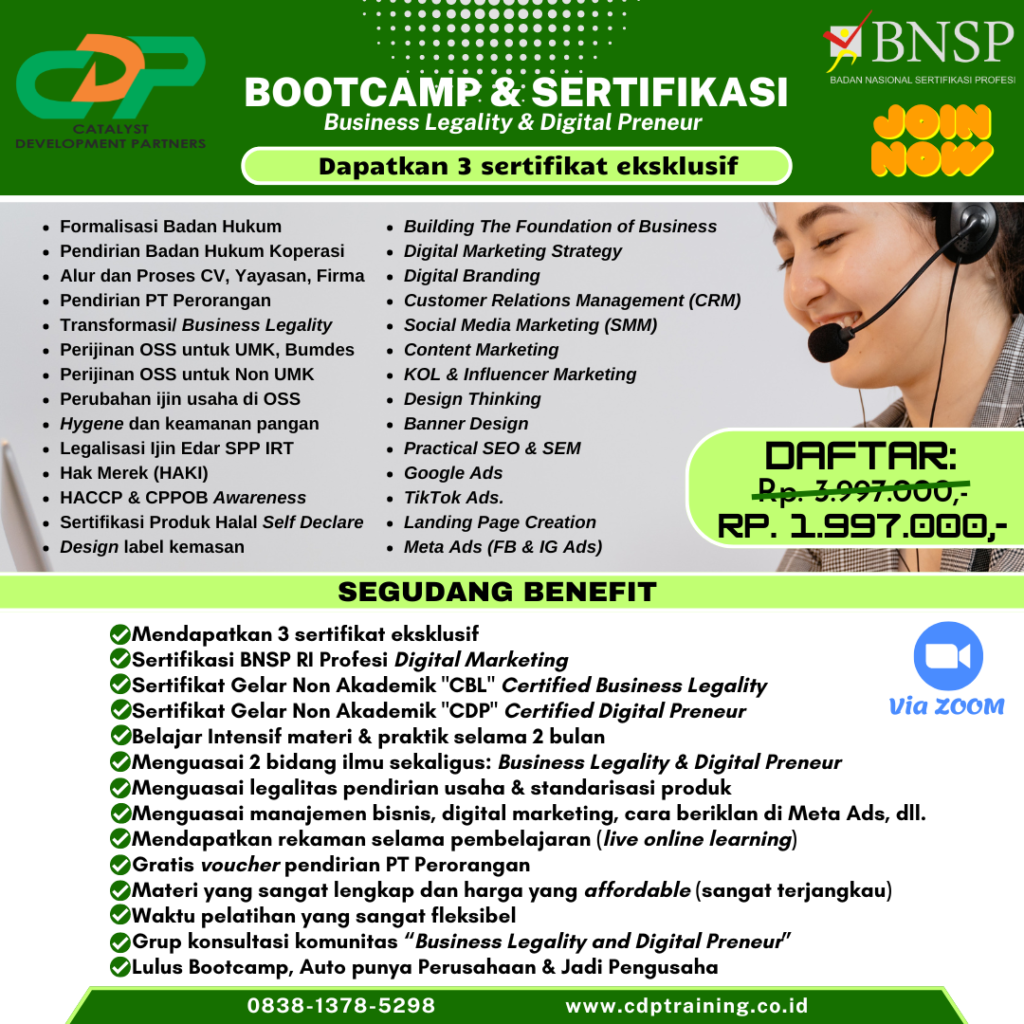 - Menguasai 2 bidang ilmu sekaligus: Business Legality & Digital Preneur
