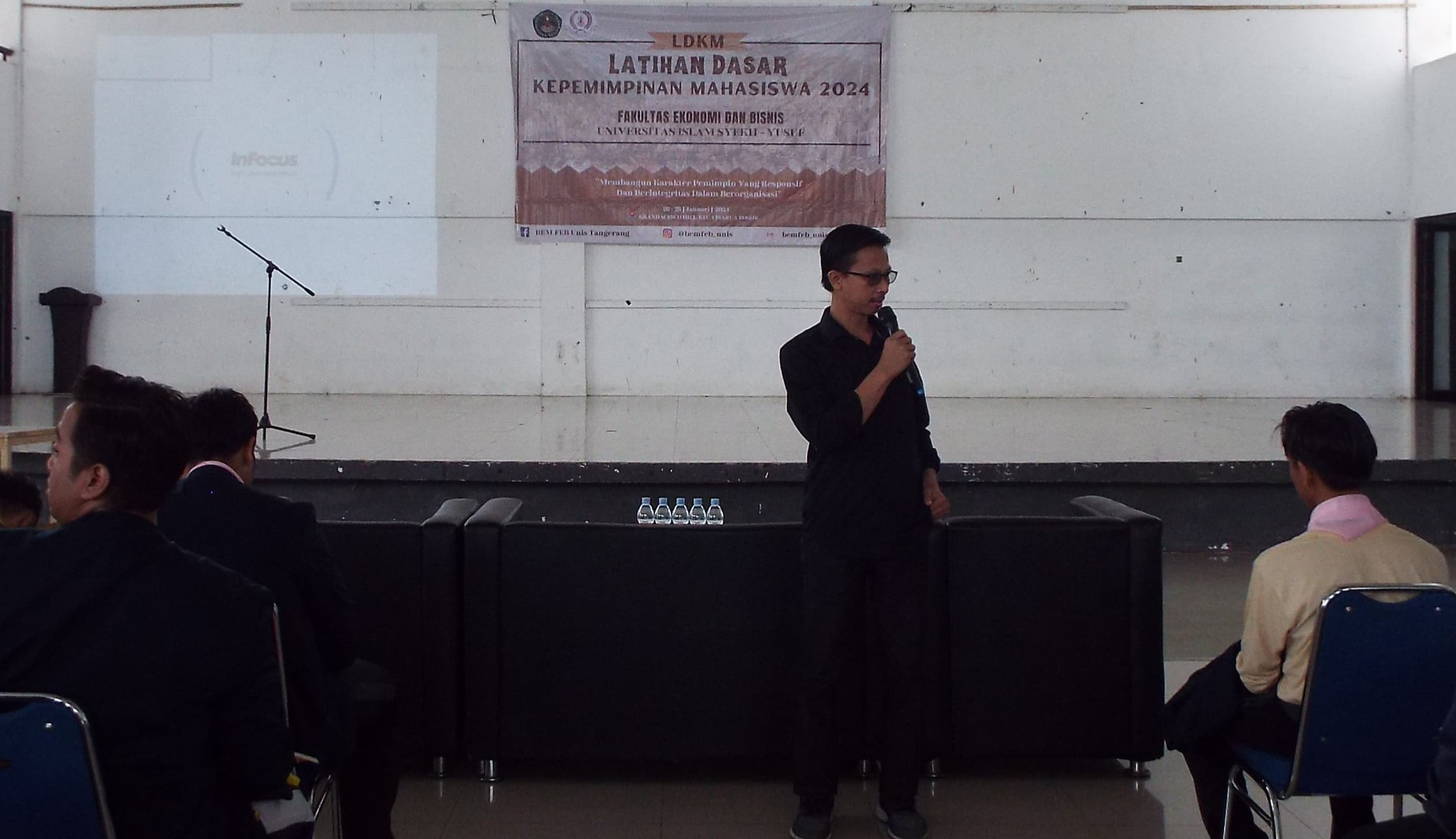 Ketua BEM FEB UNIS, Jafar Imikal Tamsir, dalam sambutannya mengucapkan terima kasih dan apresiasi kepada para pembicara, panitia, dan segenap peserta LDKM atas antusiasnya menghadiri undangan dan mengikuti kegiatan LDKM. Ia berharap kegiatan ini dapat memberikan manfaat bagi para peserta dalam meningkatkan kualitas kepemimpinan mereka dalam berorganisasi.