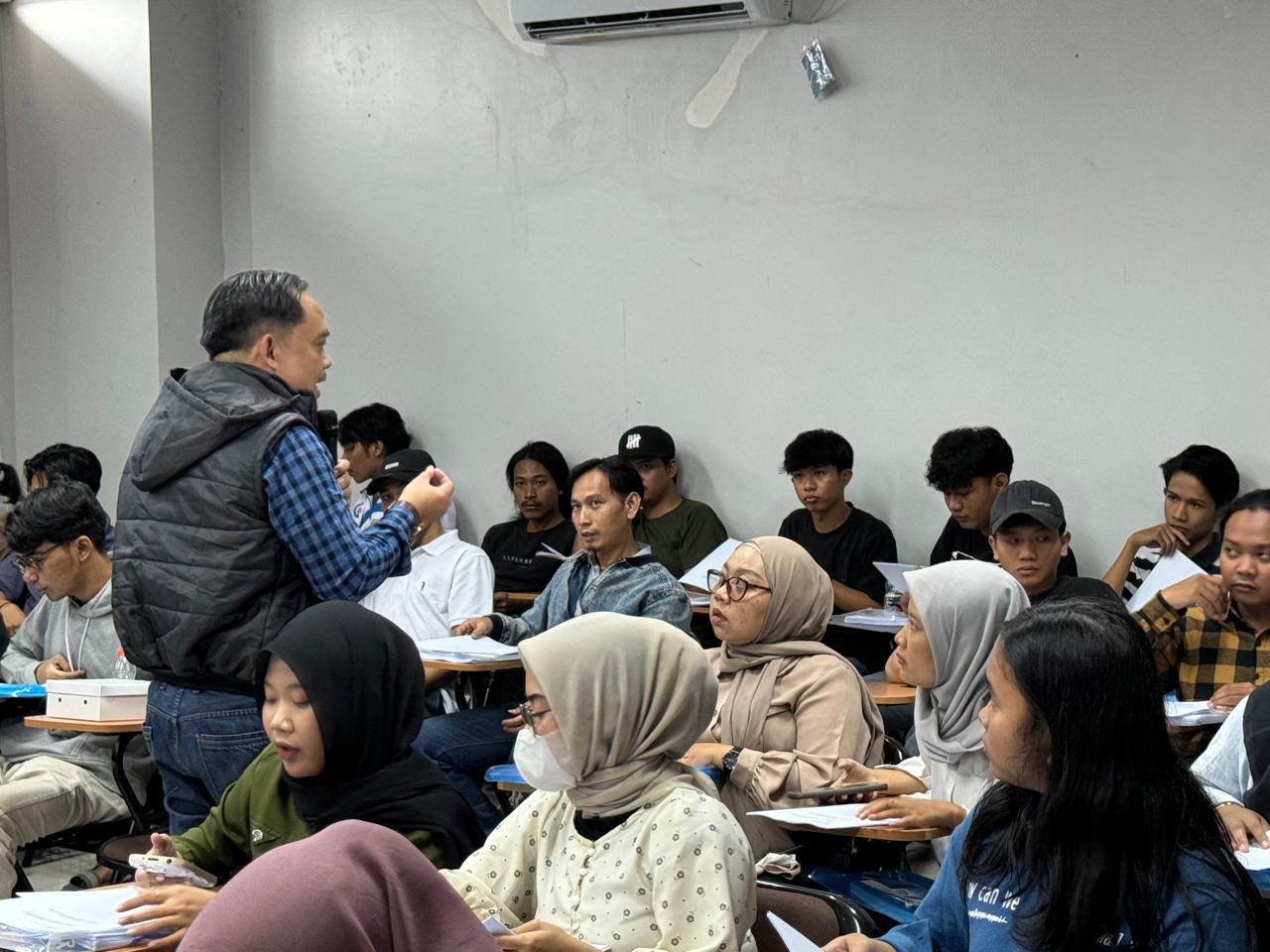 Dr. Asep Ferry Bastian, SE., MM. memulai sesi dengan penuh antusias. Beliau menegaskan, “Pelatihan ini merupakan ajang pelatihan praktis bagi mahasiswa agar lebih memahami dan mampu mempraktikkan secara nyata bagaimana menjadi surveyor dalam pelaksanaan riset.” Mahasiswa diajak untuk terlibat langsung dalam simulasi survei, sehingga mereka bisa merasakan tantangan nyata di lapangan.