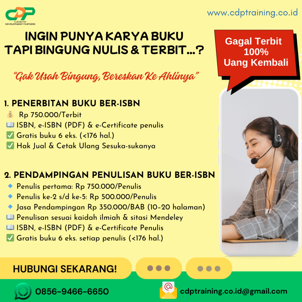2. JASA PENDAMPINGAN PENULISAN BUKU BER-ISBN Biaya Penulis pertama: Rp 750.000/Penulis